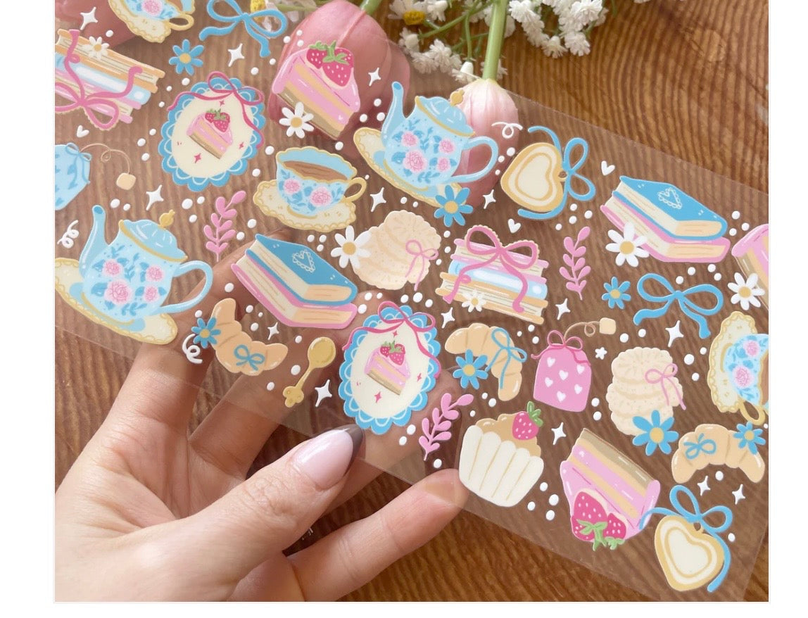 Blue Coquette Tea Time 16oz Glass Cup with Lid and Glass Straw Included